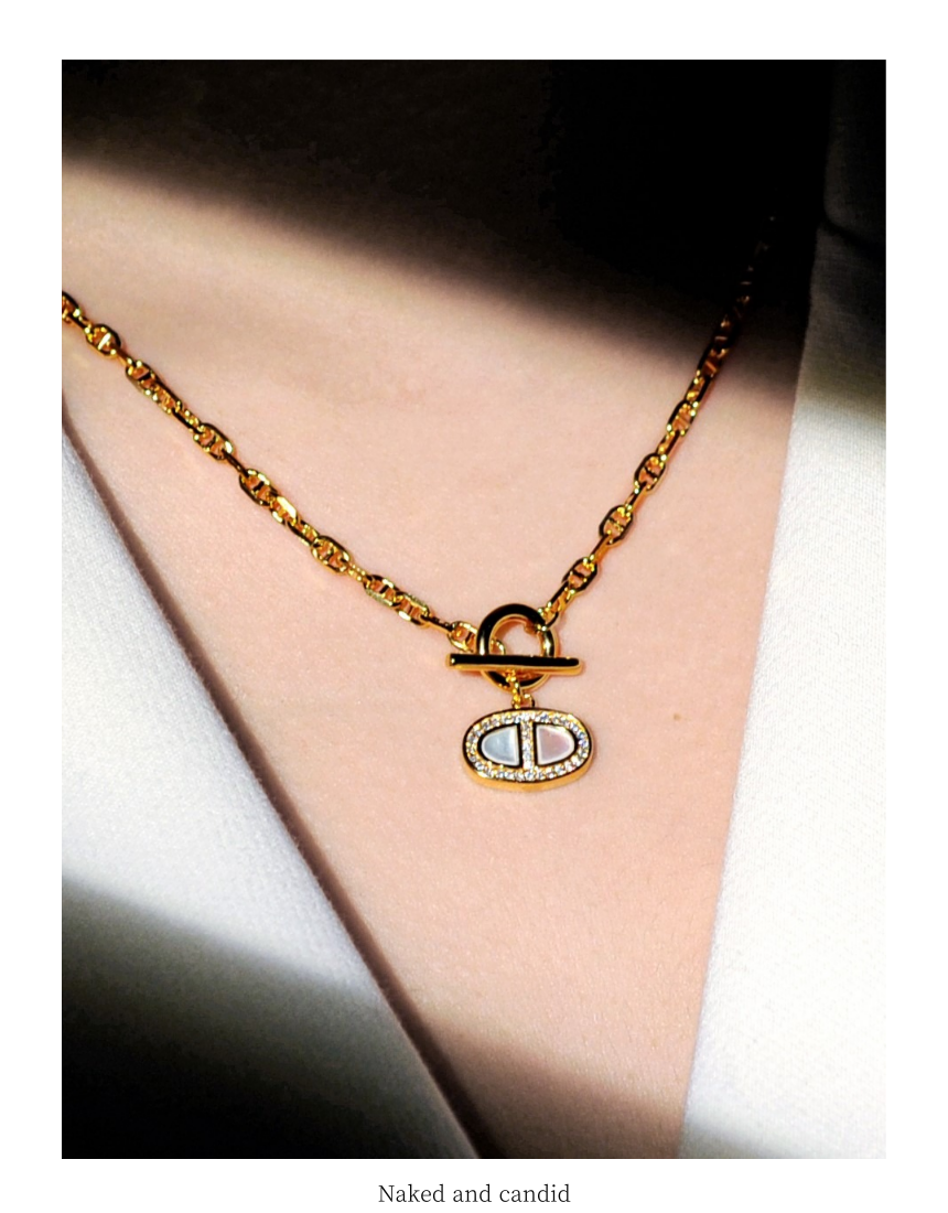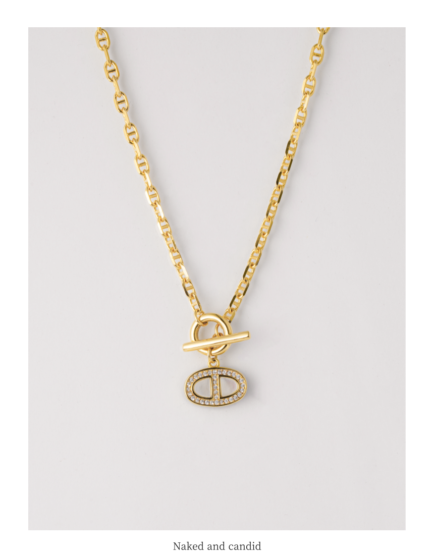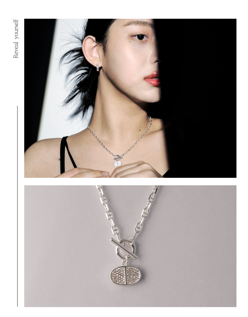 화려한 양면 팬던트에 볼드한 사다리 체인을 연결하여