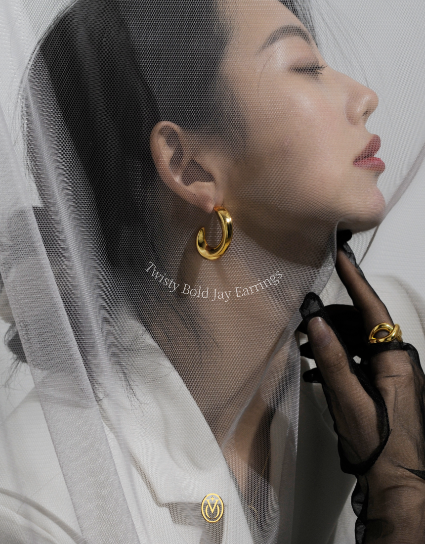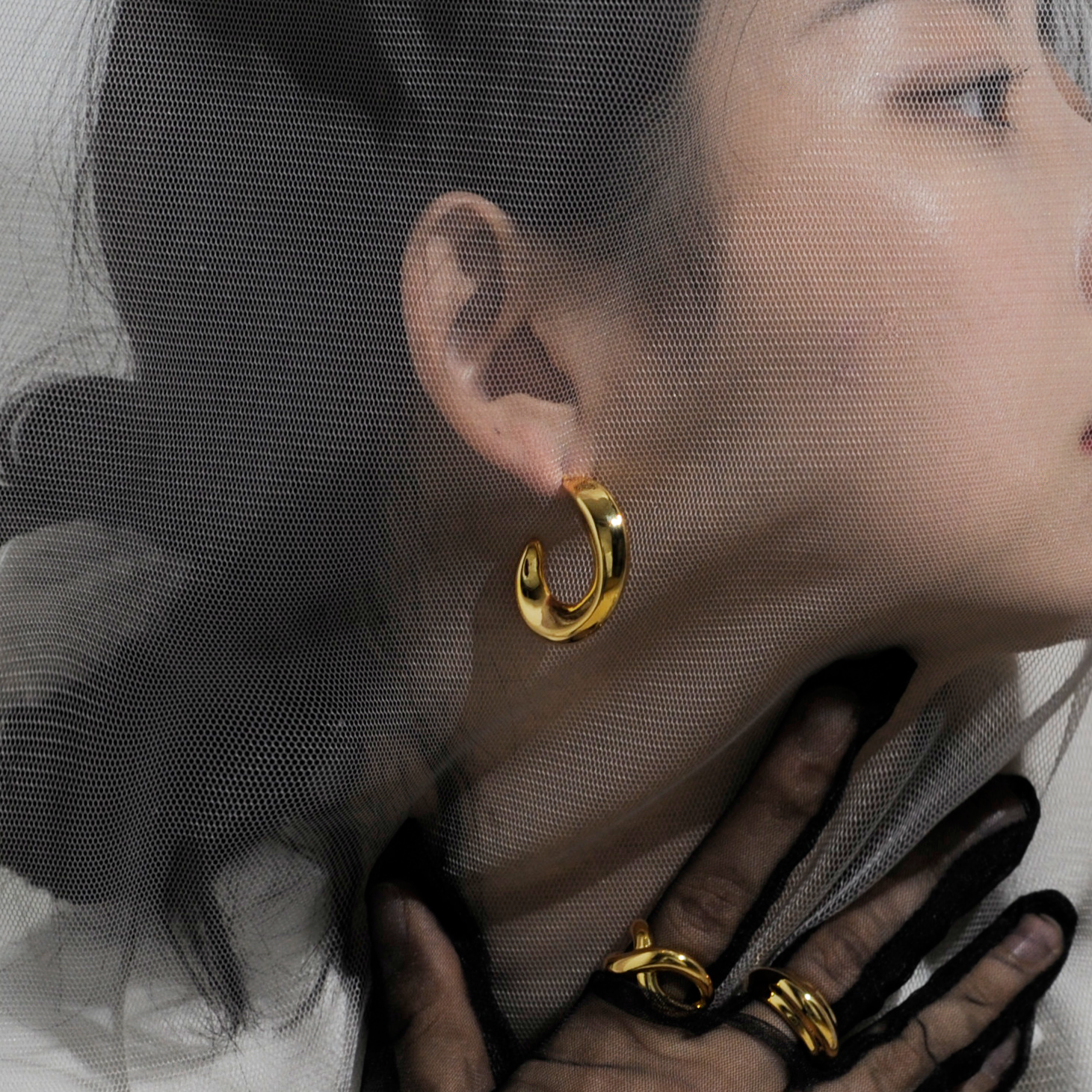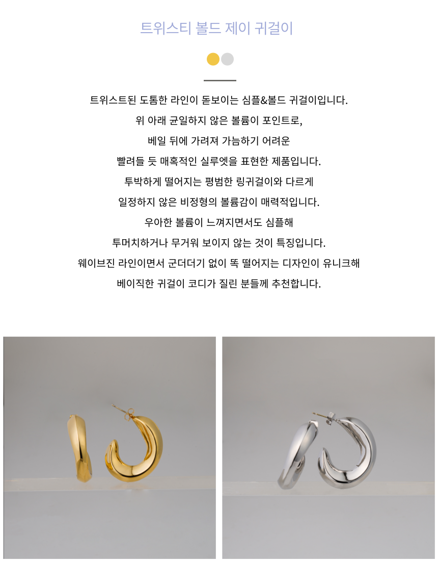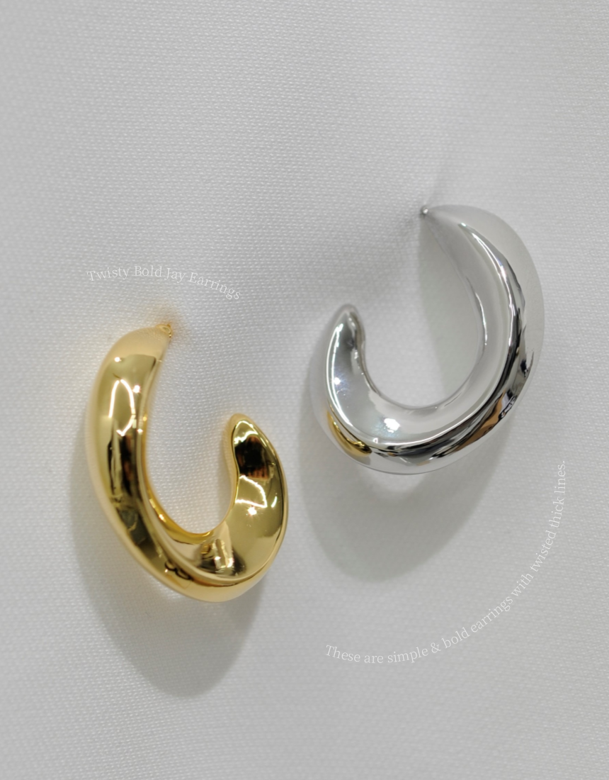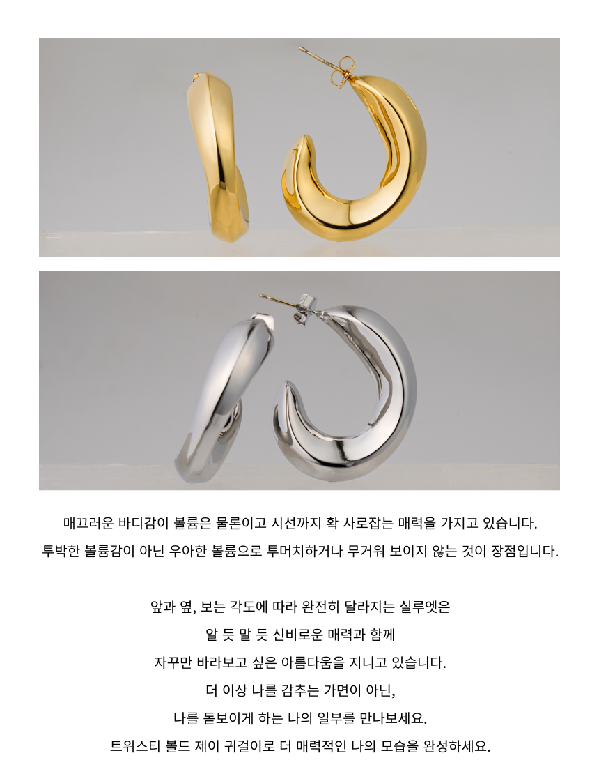 트위스트된 도톰한 라인이 돋보이는 심플&볼드 귀걸이