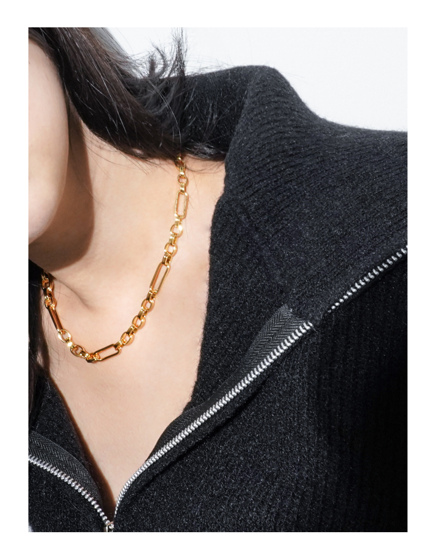베이직하게 착용할 수 있는 투링 디테일의 유니크한 써지컬 체인 목걸이